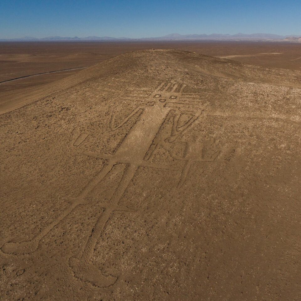 Ubicado en la comuna de Huara (Región de Tarapacá), en pleno Desierto de Atacama, esta figura es el geoglifo antropomórfico más grande del mundo.