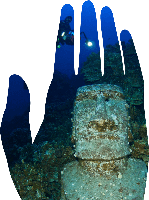 con los imponentes moais del año 300 d.C.