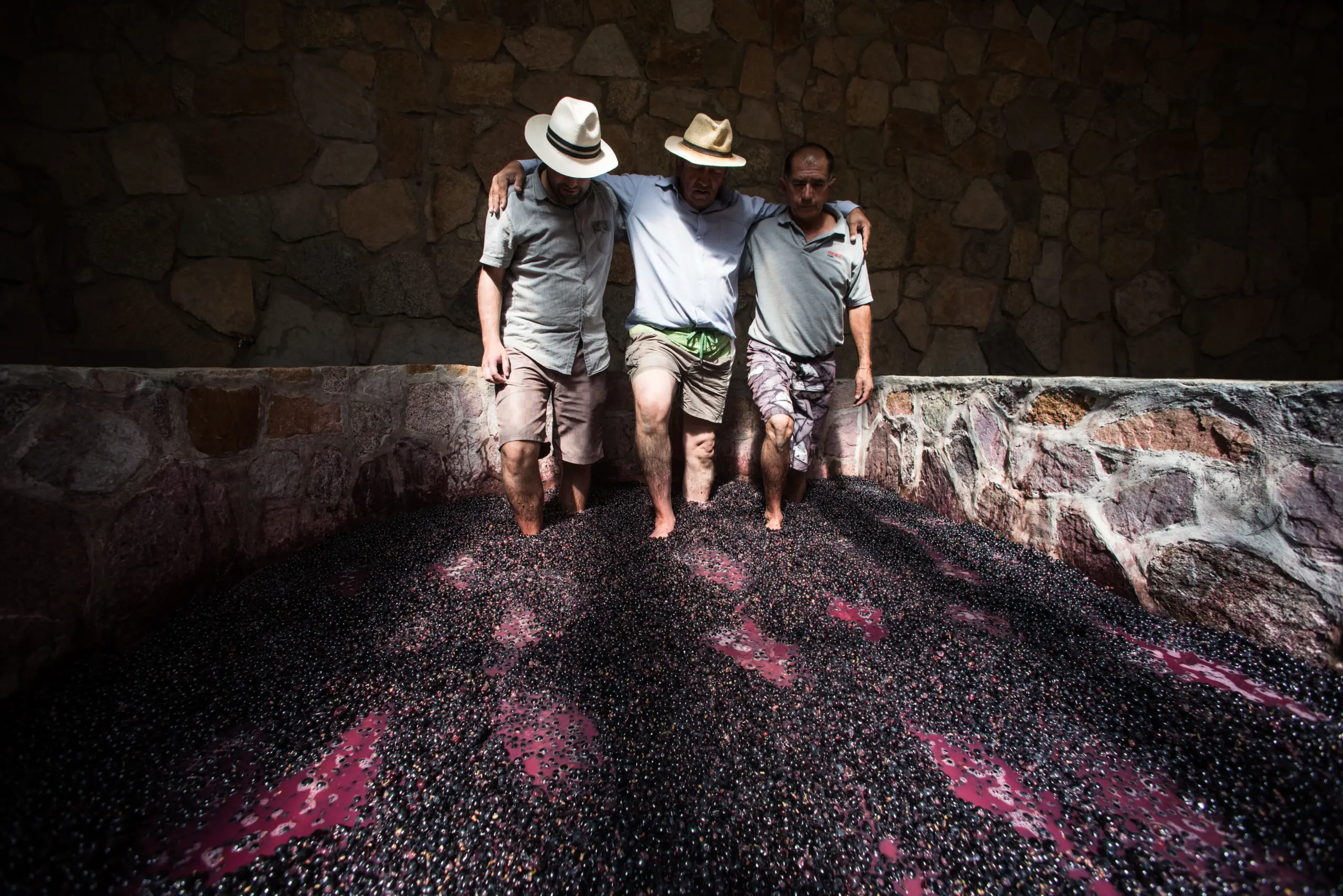 La tradicional pisada de uvas recuerda los orígenes de la producción vitivinícola en Chile, donde la tradición y el oficio dan vida a cada vendimia.