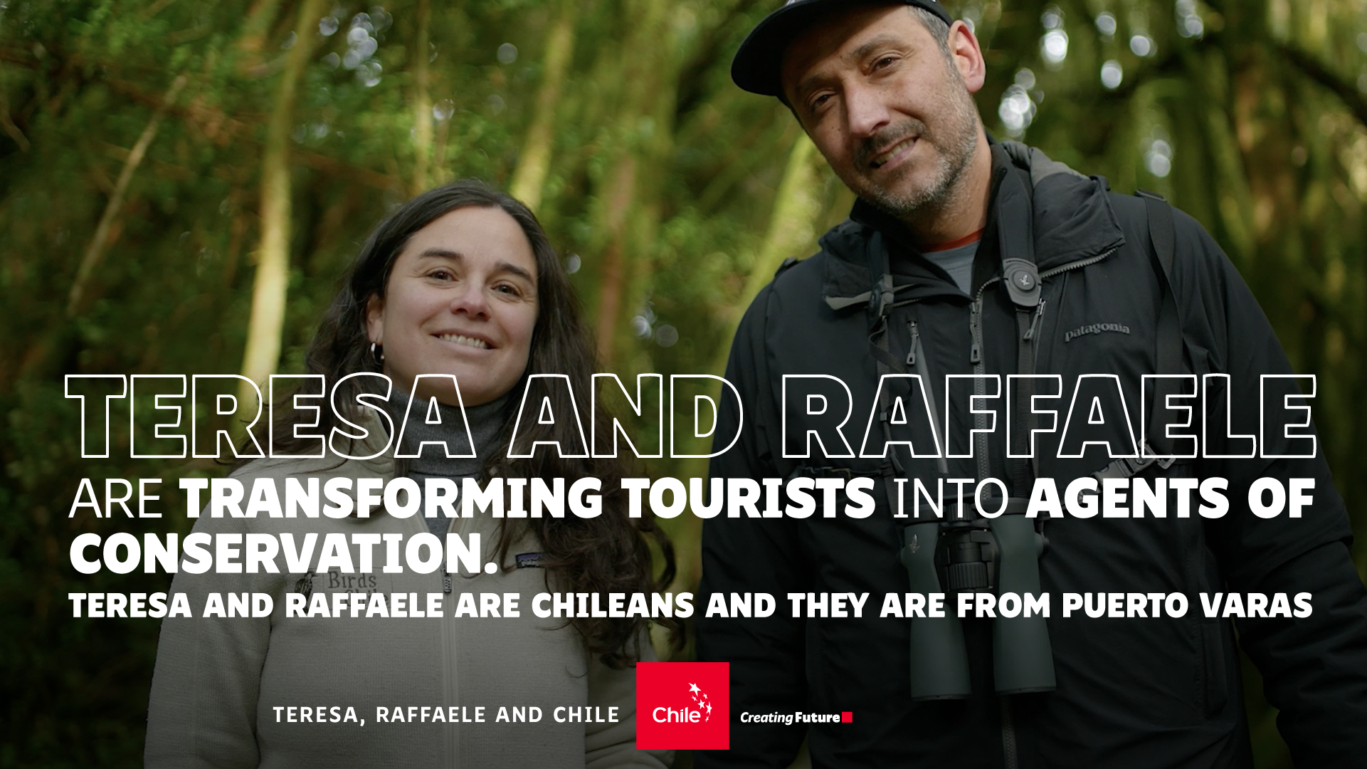 This is Teresa Montes and Raffaele Di Biase and they are from Puerto Varas, in southern Chile’s Los Lagos Region. Through their BirdsChile project, they are transforming tourists into agents of conservation. They offer a wide variety of birdwatching tours, nature trips, adventure tourism and family outings, focused on caring for nature, local heritage and communities.