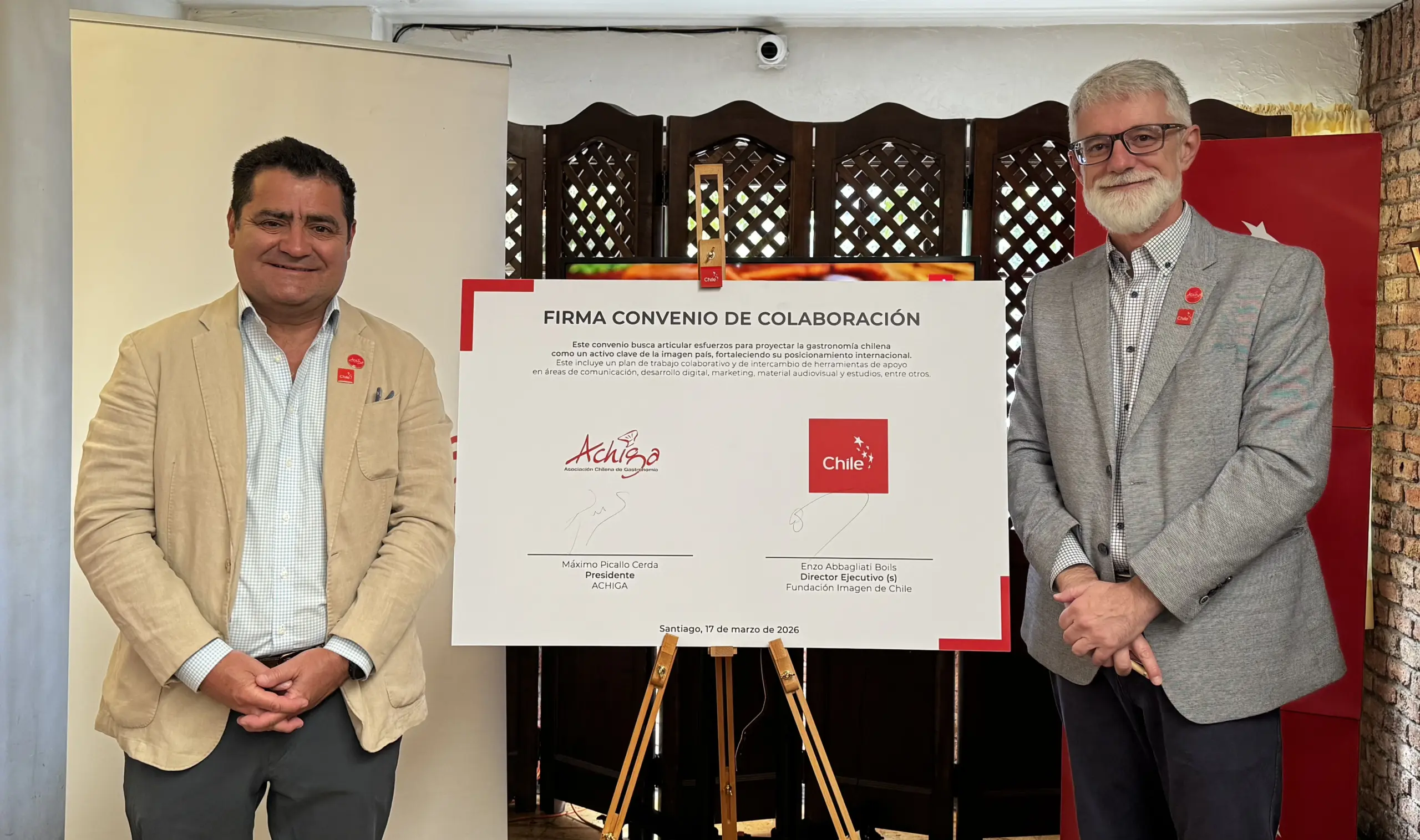 En tanto, desde Marca Chile, su director ejecutivo (s) Enzo Abbagliati valoró el acuerdo y destacó el rol que puede cumplir la gastronomía en la proyección del país. “Chile tiene en su gastronomía una expresión muy potente de su identidad, que conecta productos, territorios, creatividad y cultura. A través de esta alianza con ACHIGA buscamos fortalecer ese relato y proyectarlo de manera más articulada en los distintos espacios donde Chile se muestra al mundo”, señaló.